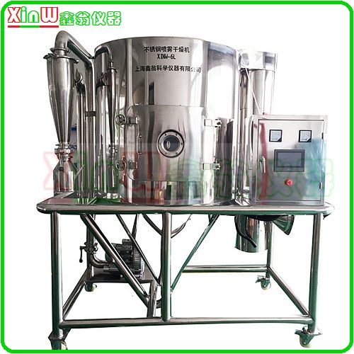 XINW-6L型不锈钢喷雾干燥机(小型喷雾干燥仪/不锈钢喷雾干燥器)其主要适用于高校、研究所和食品医药化工企业实验室生产微量颗粒粉末,对所有溶液如乳浊液、悬浮液具有广谱适用性, 适用于对热敏感性物的干燥如生物制品、生物农药、酶制剂等,因所喷出的物料只是在喷成雾状大小颗粒时才受到高温,故只是瞬间受热,能保持这些活性材料在干燥后仍维持其活性成份不受破坏。